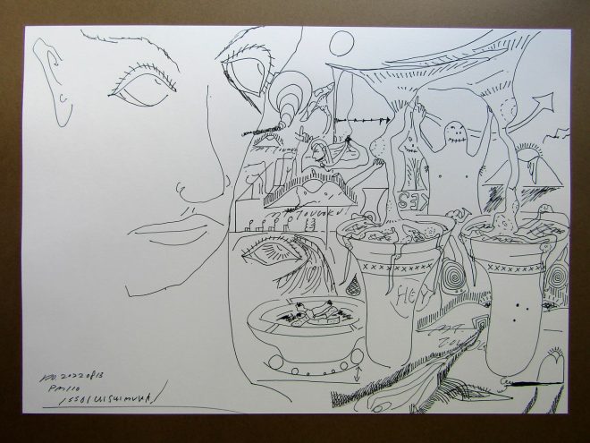 「お風呂上がりに見た夢」(№1)水彩紙、インク38×54cm20220813