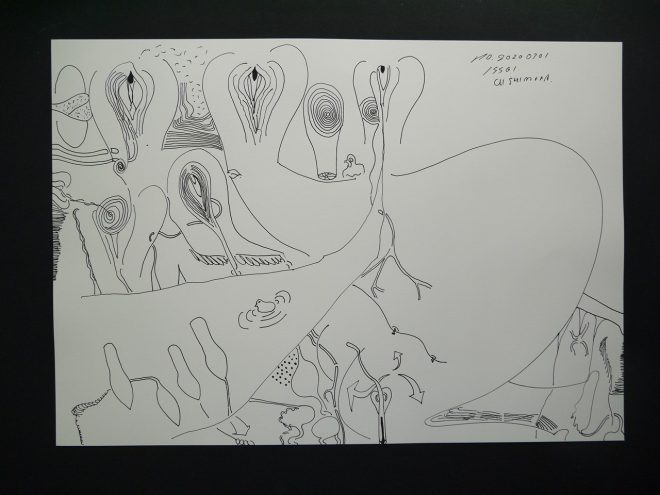 「サイの糞」(№1)水彩紙、インク38×54㎝20200701