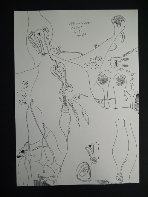 「サイの糞」(№2)水彩紙、インク54×38㎝20200701