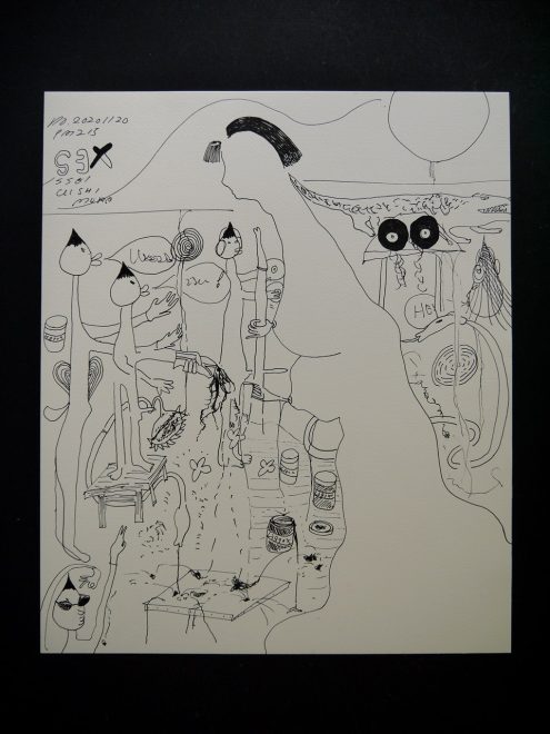 「サウンドシステム」水彩紙、インク45.5×38㎝20201120