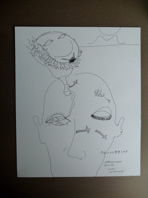 「今日はもう気乗りせず」水彩紙、インク45.5×38㎝20210315