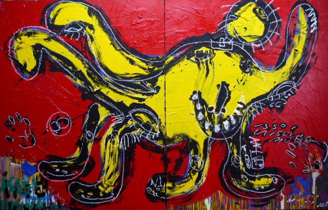 「働きなさい!」甥っ子と描いた絵の上に116.7×182cm20211124