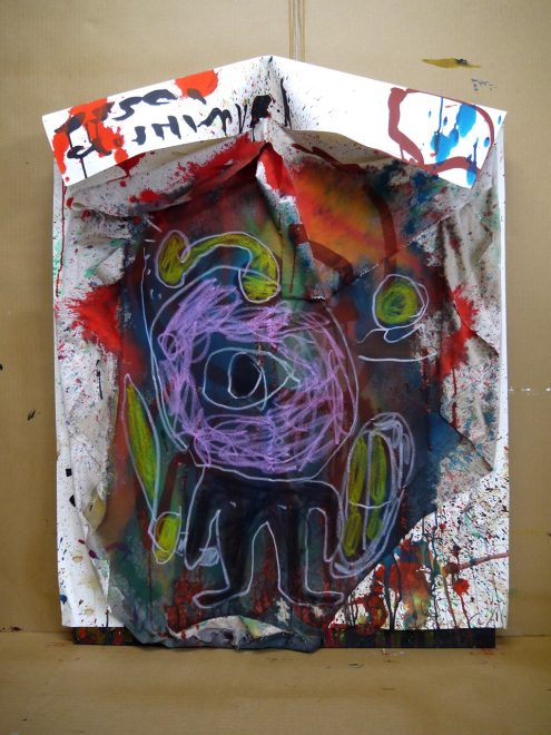 「包丁」カンバス、2枚の綿麻布と水彩紙のコラージュF3020210808