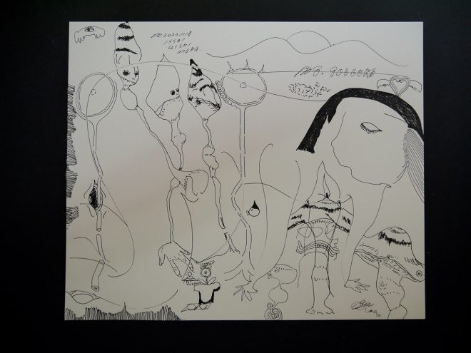 「幻覚キノコと女」水彩紙、インク38×45.5㎝20201118