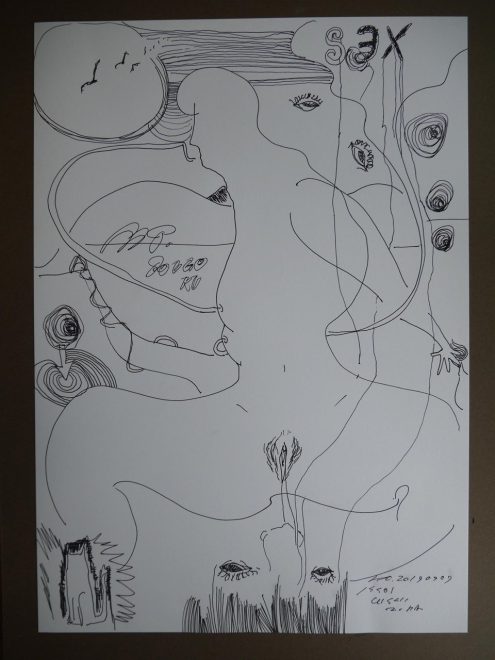 「情に交わる」(№3)、水彩紙、インク54×38㎝20190909