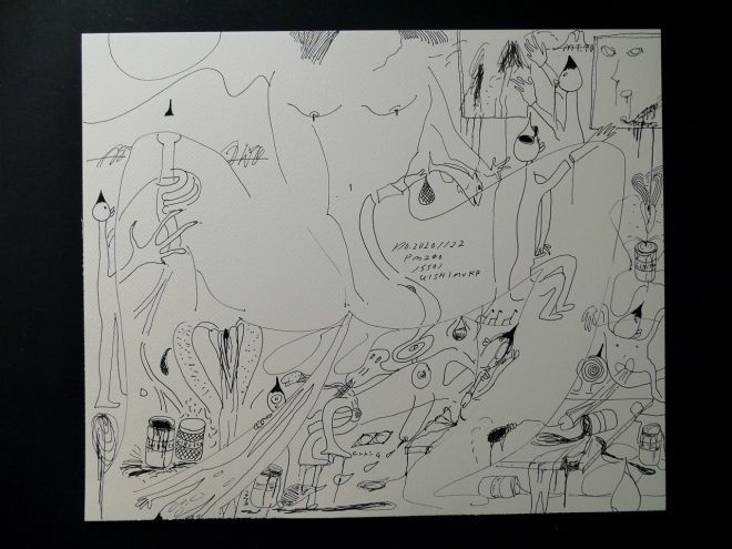 「汁をのむ」(№3)水彩紙、インク38×45.5㎝20201122