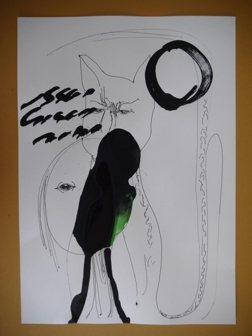 「生の表現」(№1)、水彩紙、アクリル、ブラックジェッソ、インク54×38cm20191028