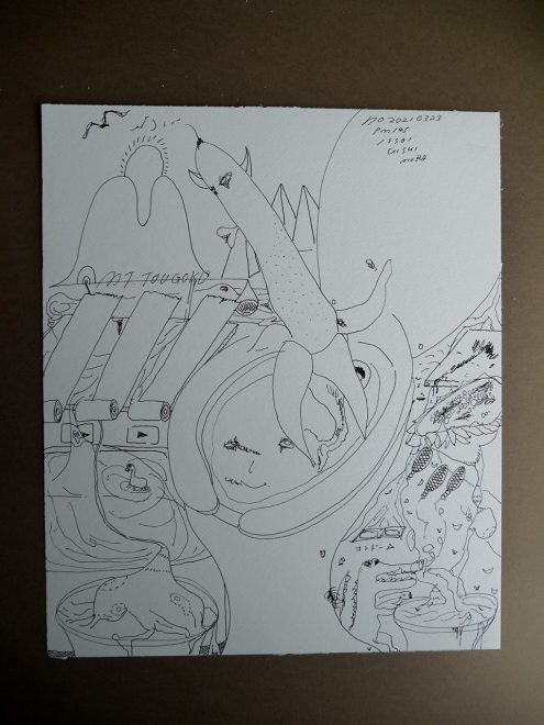 「細胞の自死」(№3)水彩紙、インク45.5×38㎝20210323