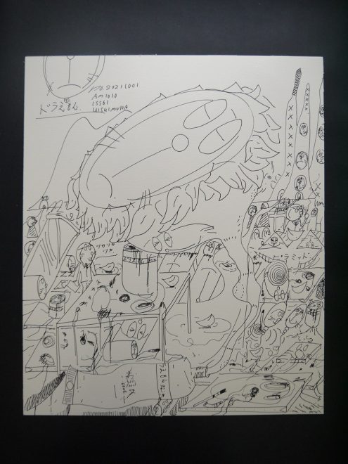「薬物中毒の自画像達」(№2)水彩紙、インク45.5×38㎝20211001