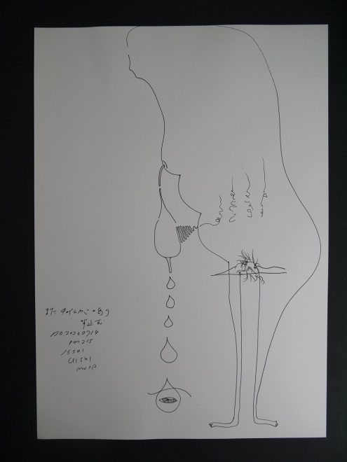 「赤鬼と帽子」(№4)水彩紙、インク54×38㎝20200714