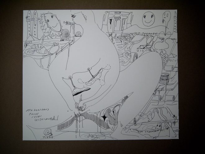 「車内情交」(№1)水彩紙、インク38×45.5㎝20210407