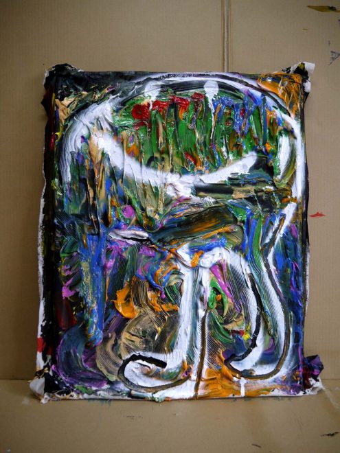 「雨の日とIMAGE」(貼り合わせた2枚のカンバスに2枚の綿麻布)88×75cm20190303