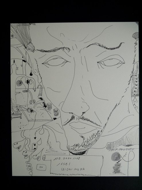「青い自画像」(№2)水彩紙、インク45.5×38㎝20201108